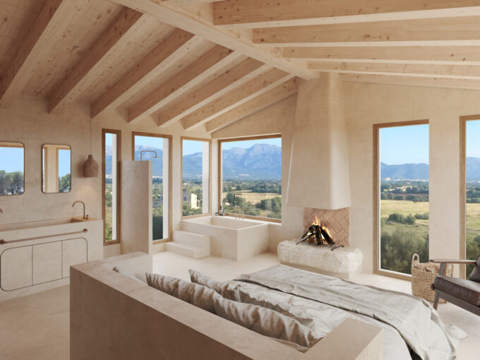 The main living area includes an elegant lounge with a fireplace, a dining room, and a fully equipped kitchen—all opening directly onto the sun-drenched terrace and pool area. On the upper floor, you’ll find four spacious double bedrooms, each with its own en-suite bathroom. The master suite includes a private sea-view terrace, perfect for enjoying morning coffee or evening sunsets.