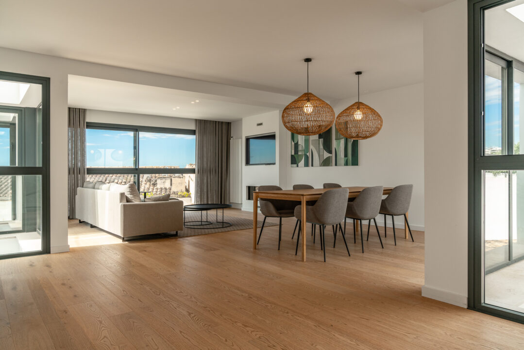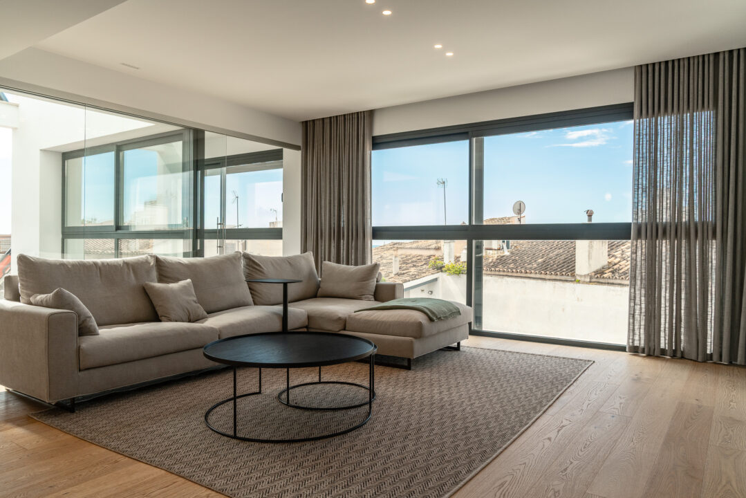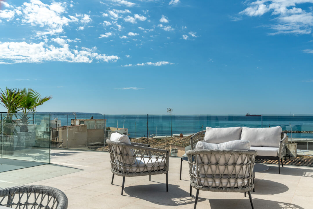 A standout feature is the expansive rooftop terrace of over 118 m², offering uninterrupted views of the sea, the Tramuntana mountains, and the skyline of Palma. This is a space designed for both relaxing and entertaining throughout the year.