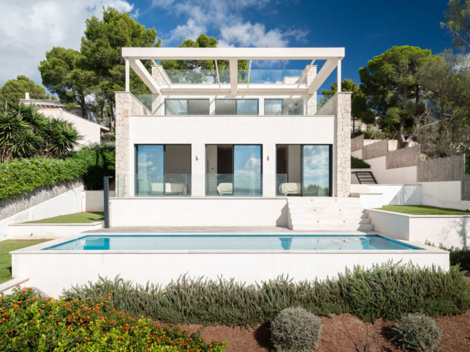 Privately set at the end of a long, landscaped driveway, this elegant Mallorca villa offers serenity, space, and seclusion. Surrounded by lavender and Mediterranean greenery, the entrance sets a tranquil tone, with a circular driveway framed by a mature olive tree.